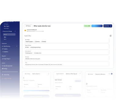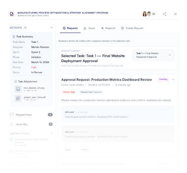 Tasks, approvals, files, and discussions live across tools — breaking execution flow and creating hidden risks